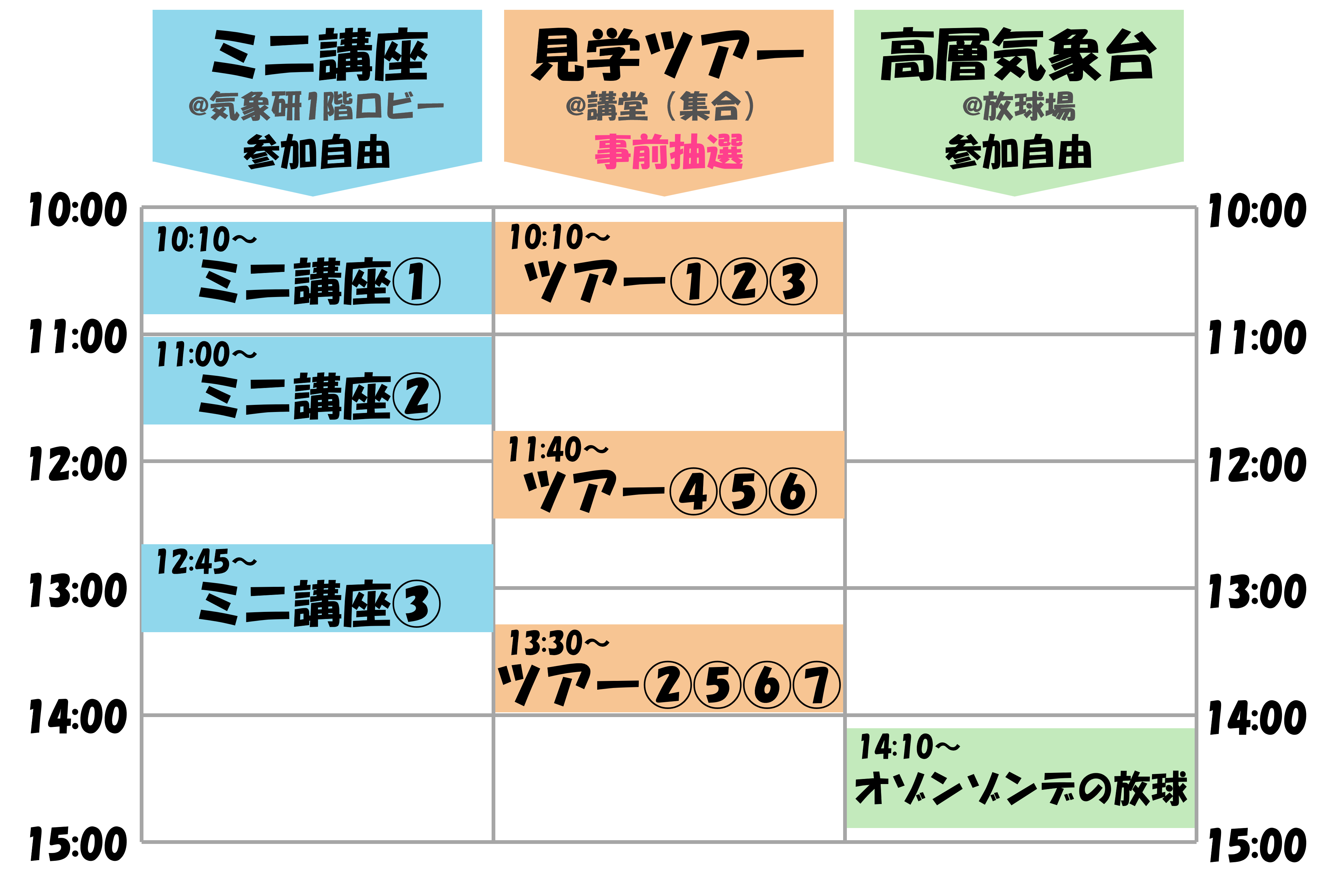 施設や観測機器の見学ツアー、ミニ講座などの催し物を企画しておりますので、ぜひお越しください。
